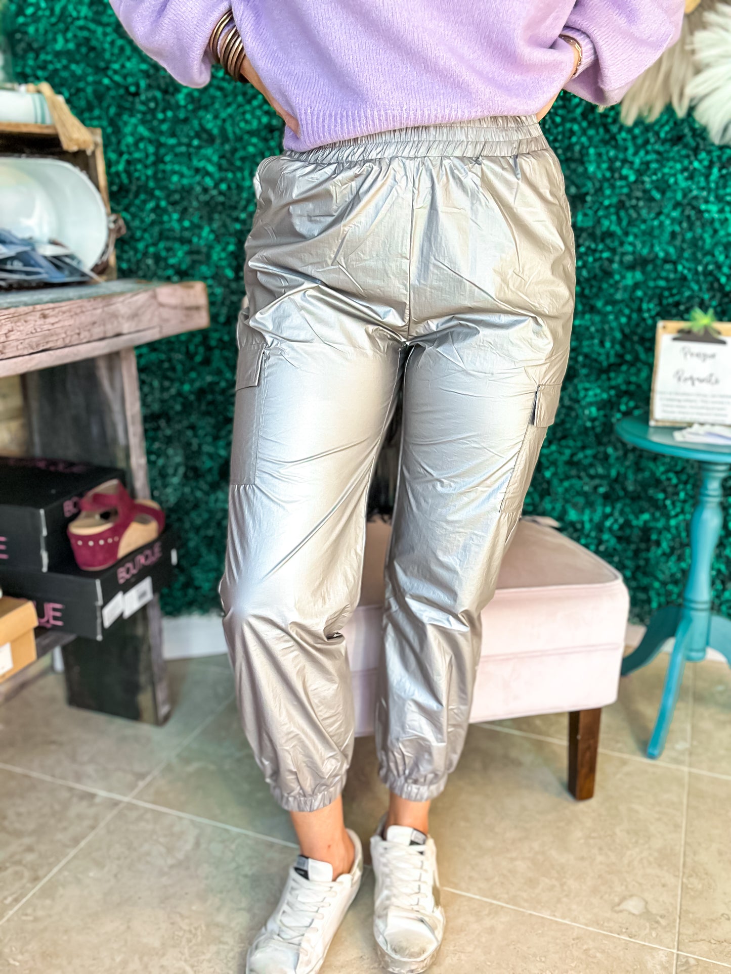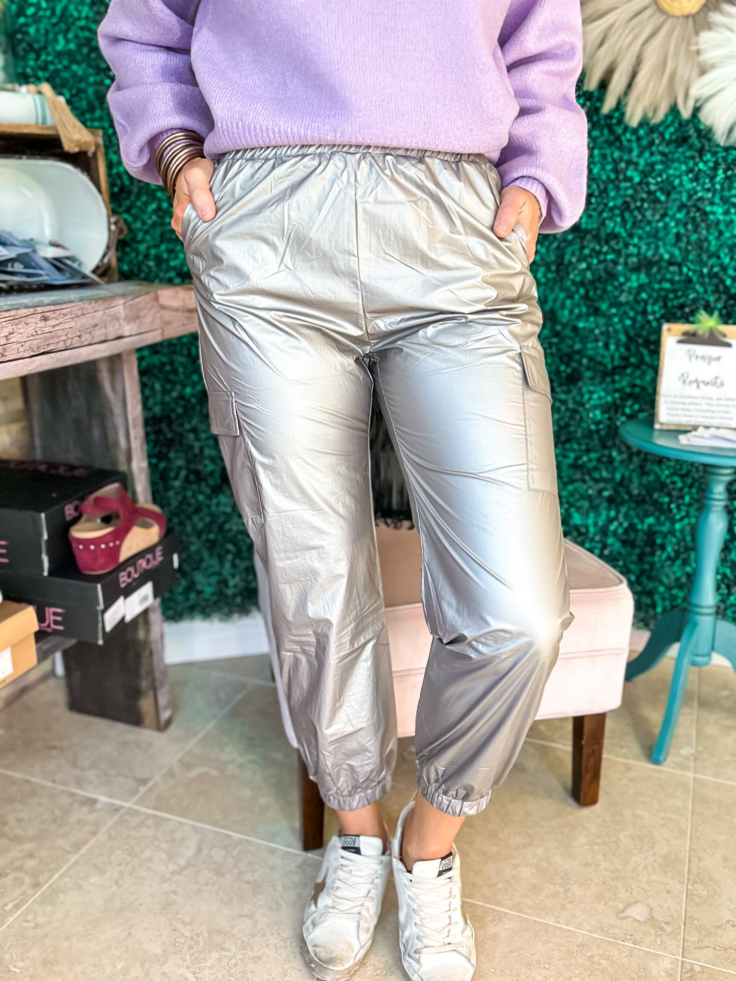 - Metallic Cargo Pants