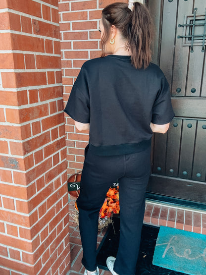 Oversized Crop Short Sleeve Sweatshirt - Black